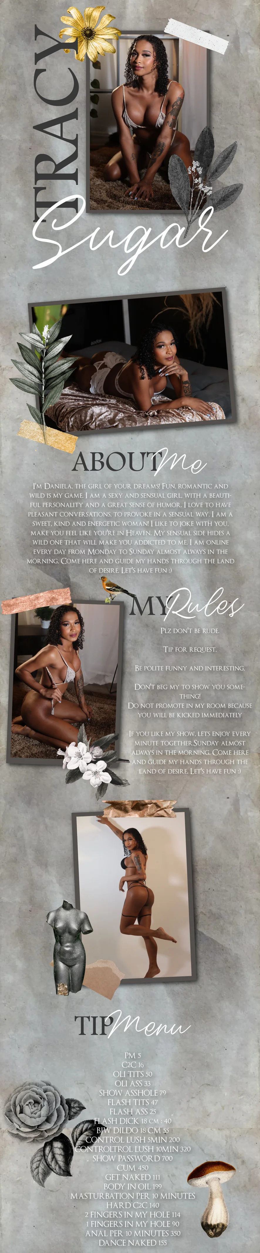 Masturbation, Oil Show, Twerk, Erotic Dance, Ass to Mouth, Handjob, Orgasm, Shower, Striptease, Blowjob, Anal, Fingering